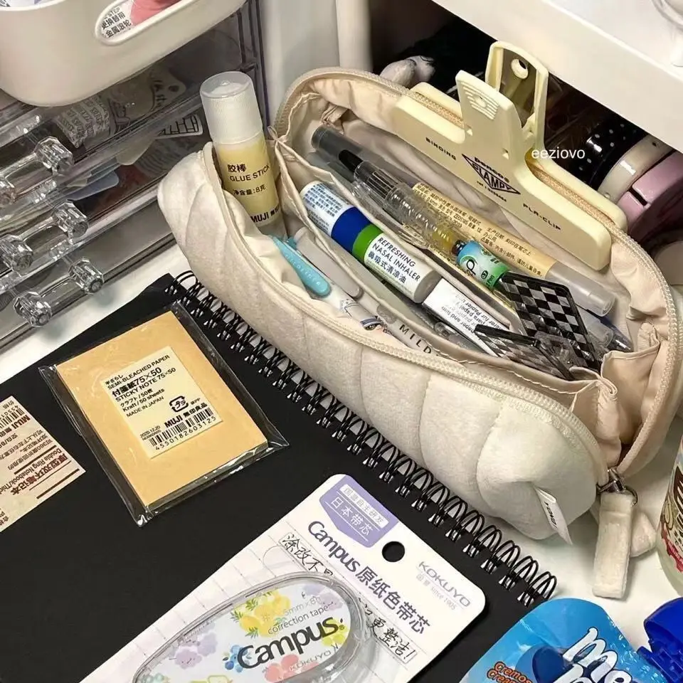 Cloud Bread Milk Fufu Pencil Case – Large Capacity Aesthetic Fabric Pouch for Students and Office Use