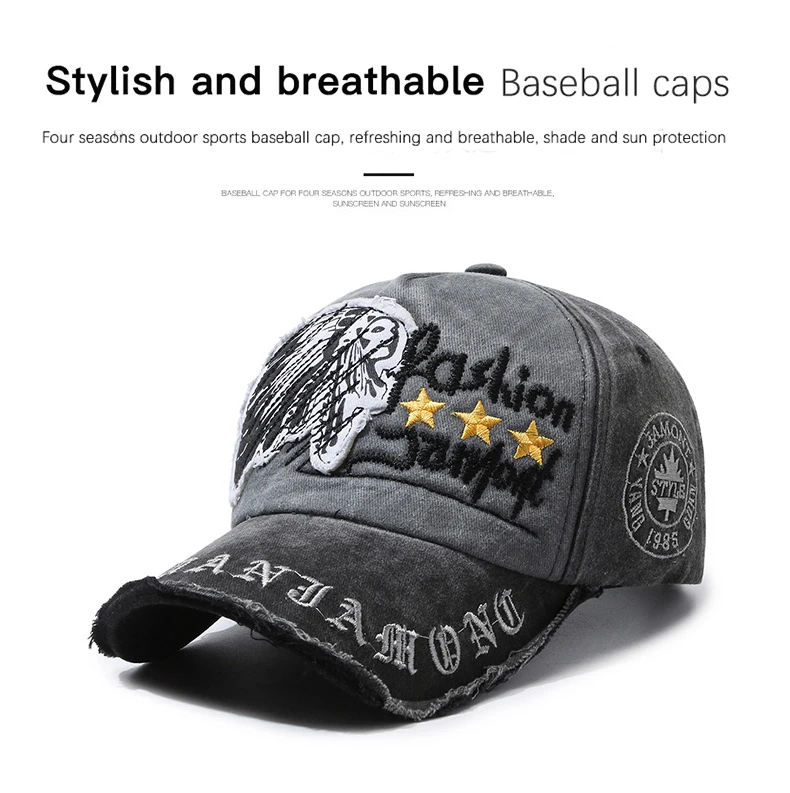 This retro distressed baseball cap combines fashion and function in one timeless accessory. Featuring bold letter embroidery, it brings a vintage touch to casual outfits while offering dependable comfort outdoors. The breathable cotton fabric ensures year-round wearability, making it suitable for sports, hiking, traveling, or everyday streetwear.